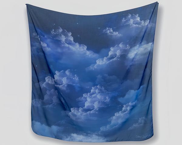Printed on lightweight, breathable fabric, these scarves flow like the clouds they represent. From gentle sunrise pinks to deep twilight blues, every design tells a story of stillness, movement, and grace.